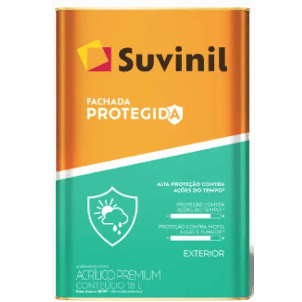 A tinta Suvinil Fachada Protegida é a escolha ideal para manter as paredes externas renovadas por muito mais tempo. Graças à sua fórmula sustentável, ela combina proteção e durabilidade. A tinta protege sua fachada contra os efeitos do sol, chuva, mofo e algas, o que garante cores vibrantes e um visual impecável por anos.