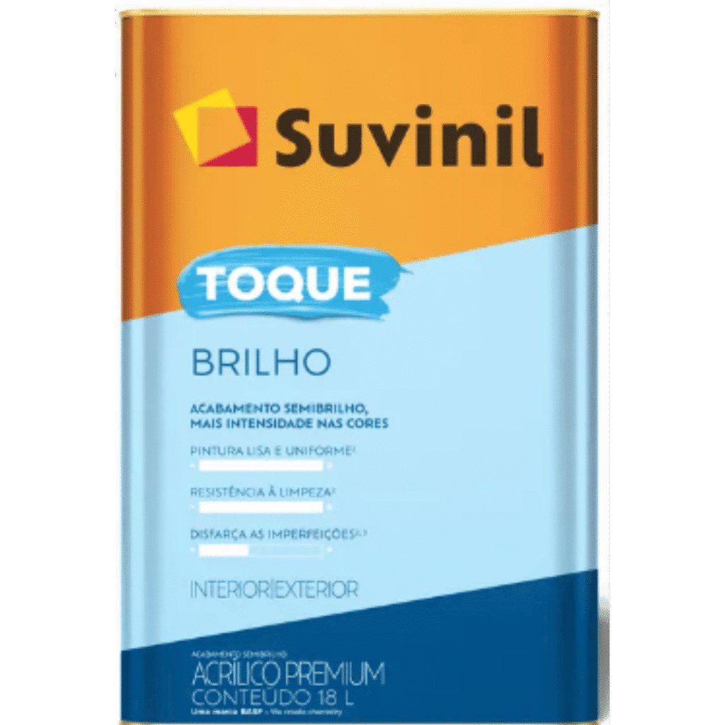 A tinta Suvinil Toque Brilho oferece um acabamento semibrilho que intensifica as cores. Além disso, ela garante o máximo desempenho em uma pintura lisa e uniforme, com alta resistência à limpeza.